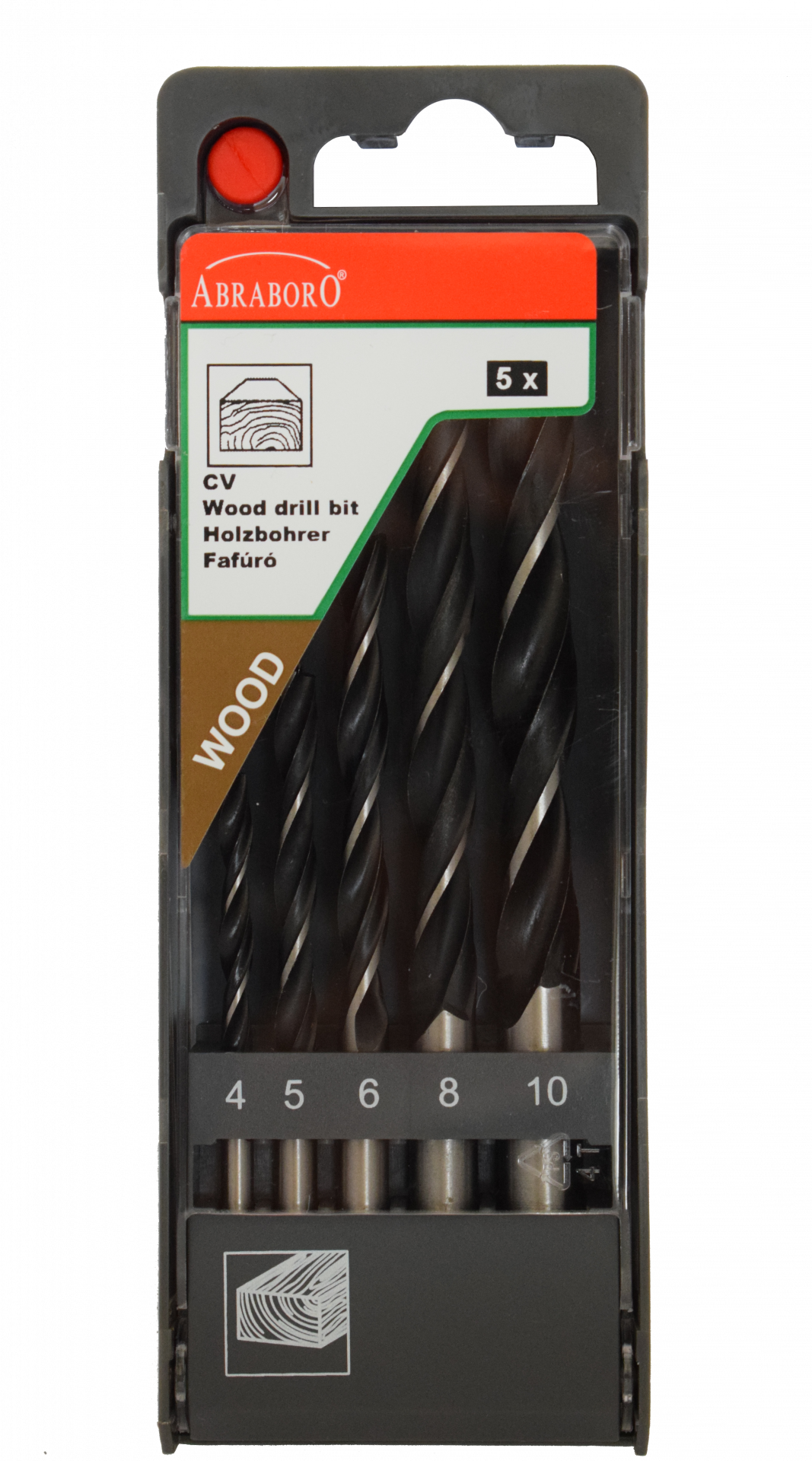 Abraboro 5 részes rövid fafúró készlet, műanyag dobozban
