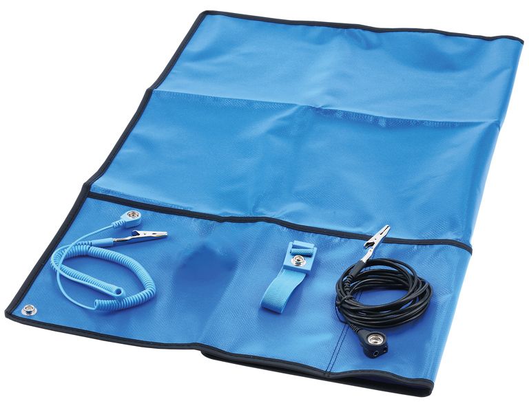 Hordozható ESD szervizkészlet érzékeny elektronikai eszközökön végzett munkákhoz, az elektrosztatikus kisülés okozta károsodás nélkül.