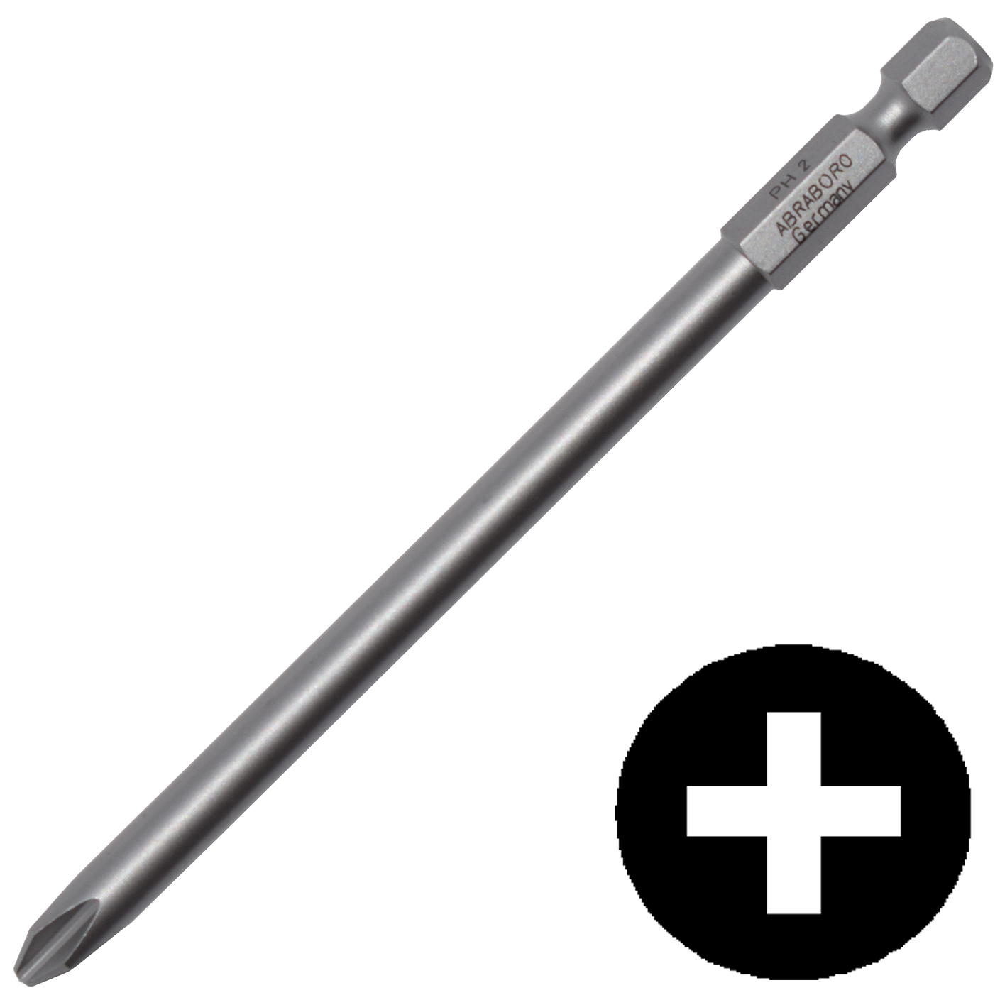 - Csavarbehajtó hegy (röviden: bit) hosszú (110 mm), ¼” E 6,3 befogással DIN 3126 szerint gépi csavarozókhoz és kézi működtetésű szerszámokhoz.
